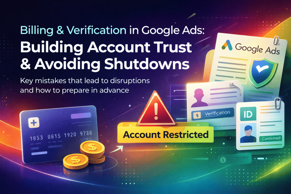 Платёжная информация и верификация аккаунта являются одними из ключевых факторов доверия в Google Ads. Даже при правильной структуре кампаний и хорошем лендинге реклама может быть ограничена или остановлена, если система видит риски в биллинге или данных рекламодателя. Google оценивает не только содержание рекламы, но и надежность аккаунта в целом. Чем выше уровень доверия, тем стабильнее показы, быстрее модерация и ниже вероятность ограничений. Понимание того, как работает биллинг и какие сигналы влияют на доверие, позволяет избежать проблем и выстроить устойчивую рекламную систему.